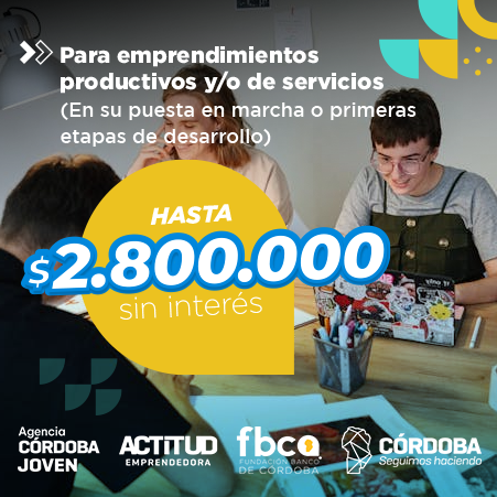 - Persona física (mayor de edad; edad máxima 80 años al finalizar el crédito) o persona jurídica con domicilio en la provincia de Córdoba.